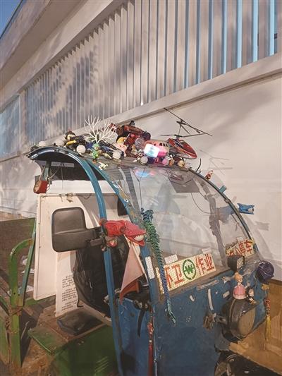“好多人看到我的车都会拍照,觉得好看好玩,车停在路上有人拍,开在路上也会有人拍,我就停下来给他们拍,拍好我才走。晚上车停在这里碰到有人来拍照,我会把灯打开,车顶的一圈灯也是捡来的,连上电瓶会亮,如果他们要录视频,我还会把音乐放起来,音乐也是我自己鼓捣装上的。和睦新村有位老太太拍了我这辆车发到亲戚朋友的群里,大家都说很好看,这辆车已经成了路人眼中的网红车了。”