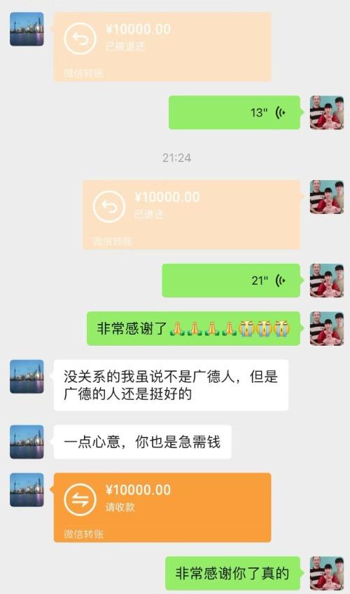 捐款数额从5元到1万元不等,这些都是普通市民力所能及的善意。面对陌生的爱心人士,直接转账就是1万元,“吓”得陈德凤立即退了回去。“我们这素不相识的,捐1万块钱太多了,我讲不出来那种滋味,我不能收。”但对方表示,“这是给孩子的救命钱”,坚持让陈德凤收下。