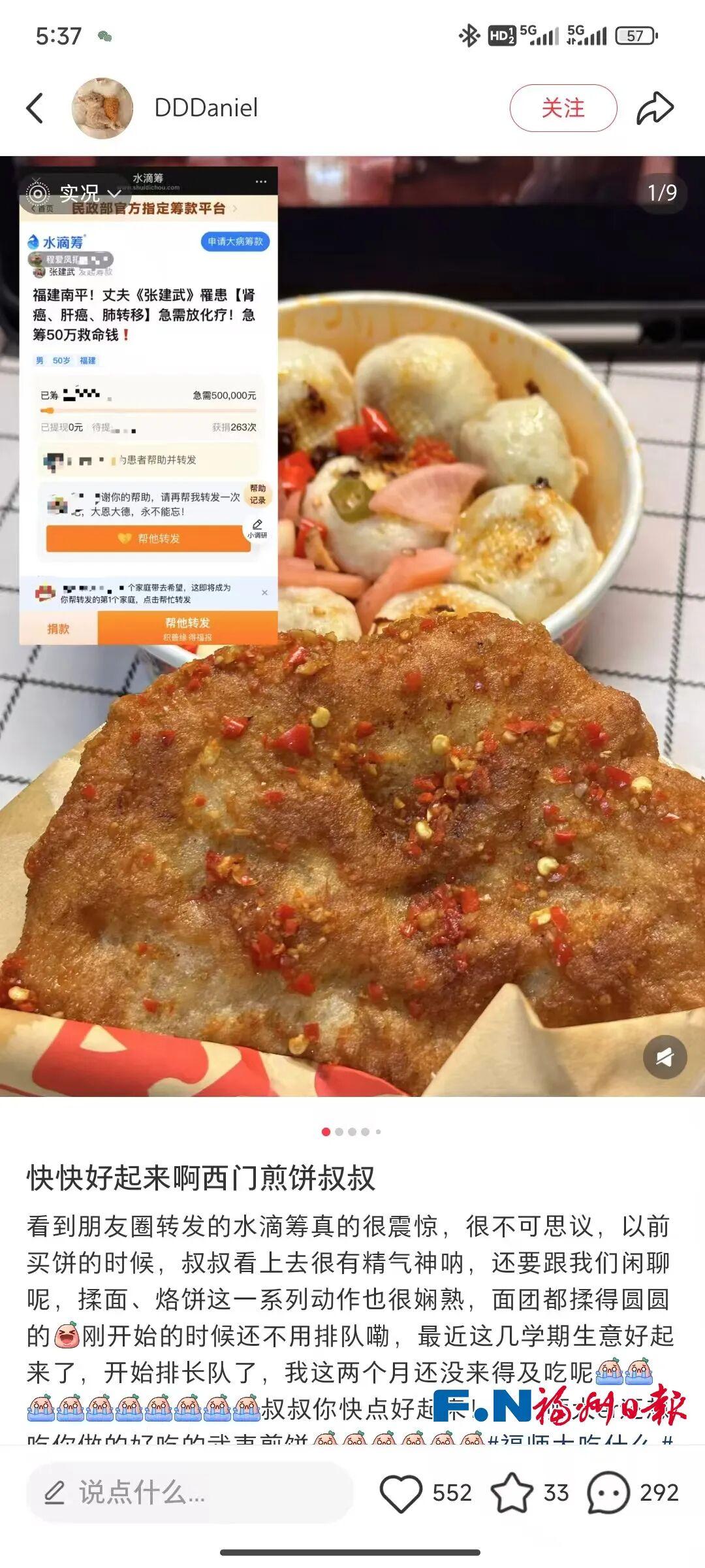 “在朋友圈发现了张叔叔的求助链接,才知道他得了这么重的病,我分享到朋友圈和小红书后,没想到那么多人关注,大家都在进行爱心接力……”第一时间将消息发到社交平台的福建理工大学学生李梦珍表示。