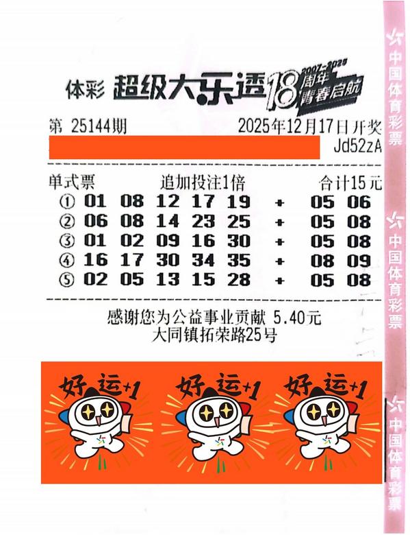 胡先生与体彩结缘已有六个年头,他表示自己购彩没有固定的实体店,秉持着“遇见就买”的随性态度,这次中得大奖的彩票也是他偶然路过一家彩票店的时候买的。这家体彩实体店位于杭州建德市大同镇拓荣路25号,编号为3301011550。据了解,胡先生始终专注于大乐透这一玩法,且在选号方面,他既不刻意研究历史开奖号码,也不依赖寻找规律,而是从车牌号、身份证号码等日常所见中获取灵感,随机自选号码,在轻松购彩的过程中享受乐趣。