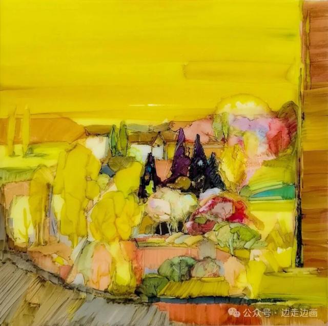 《乡野光韵》组画2,杨世艳,酒精马克笔、PVC板,30cm×30cm,2025.11