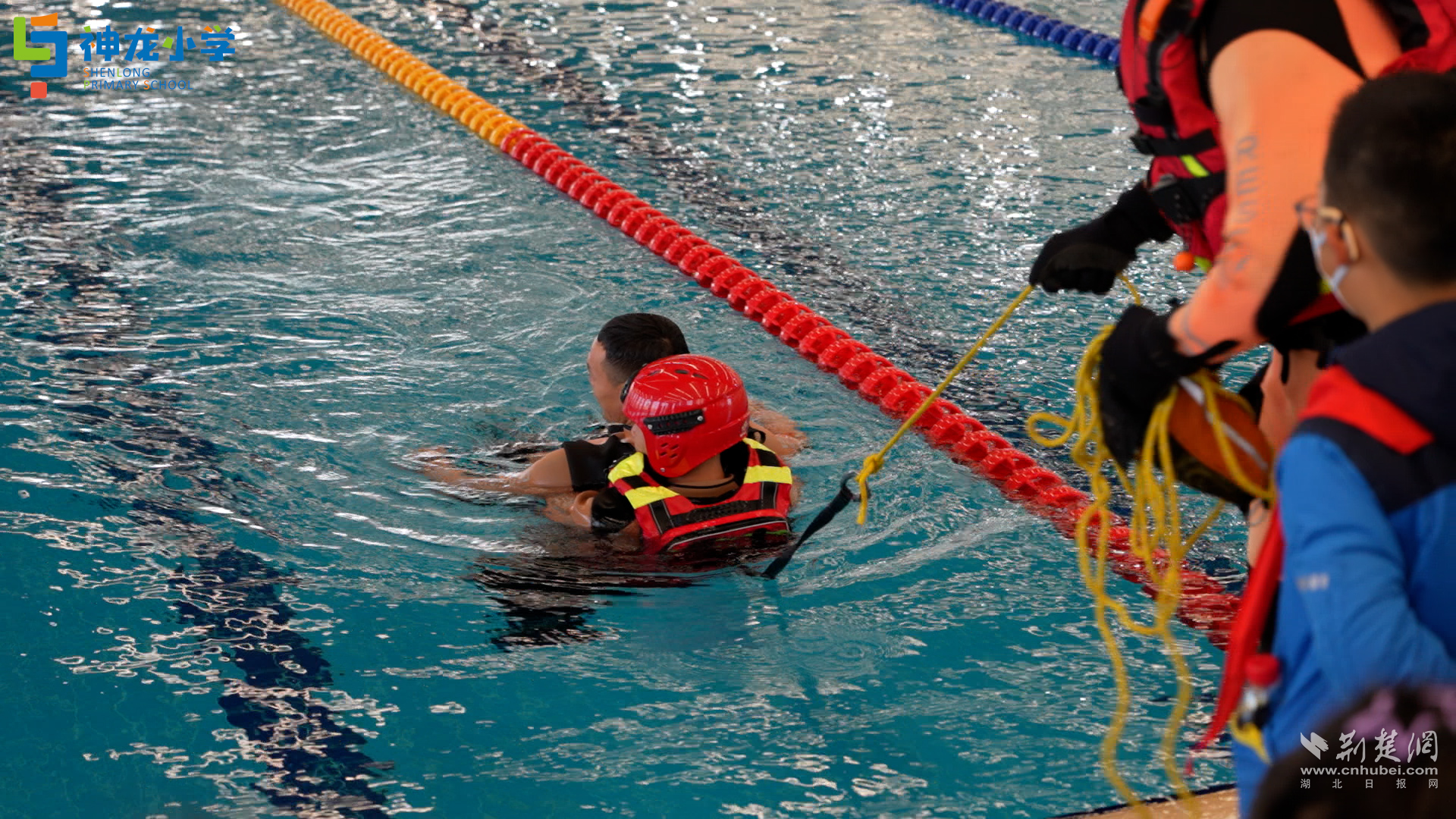 恒温泳池畔,教练演示了抛投救生圈与水中施救的正确方法。学生们穿戴好救生设备,分组进行落水救援实操,在指导下练习施救与脱困动作。