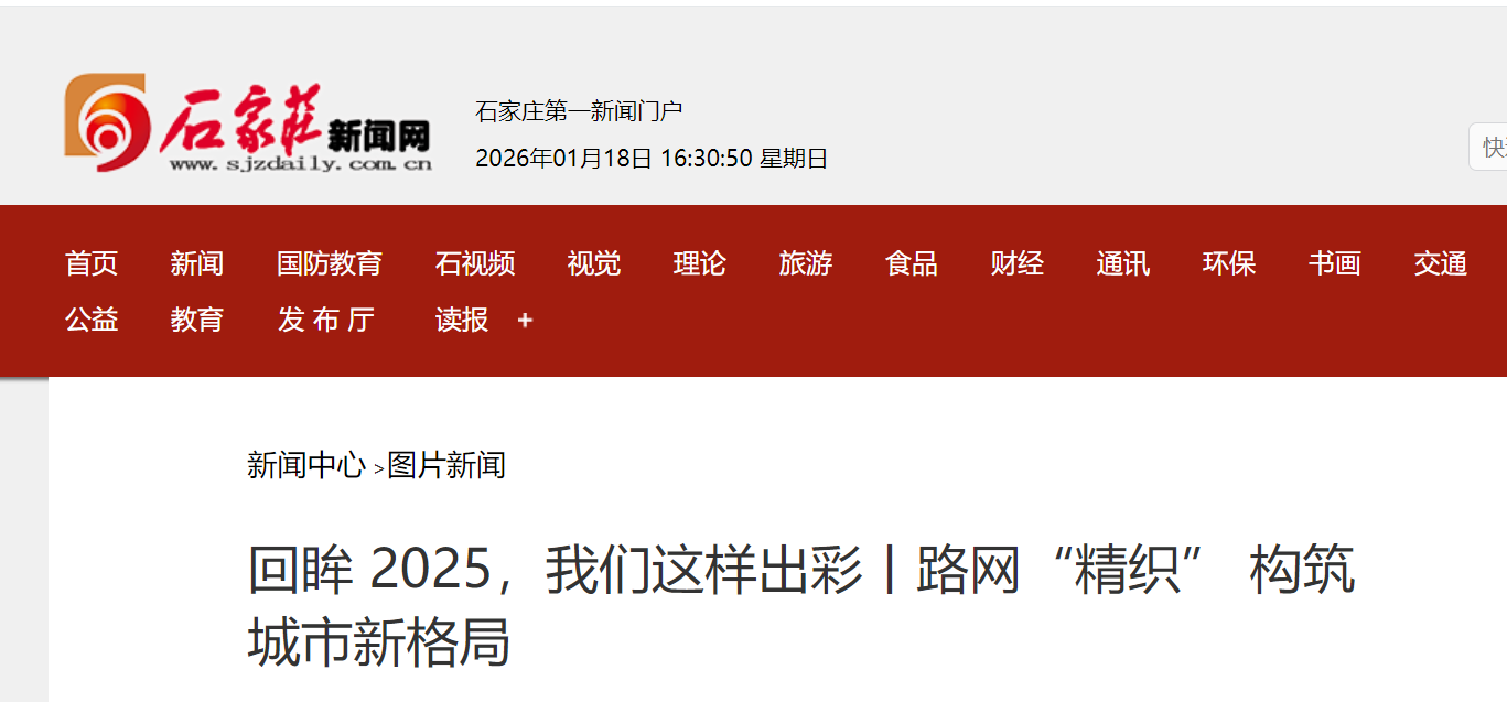 2025年,石家庄市共打通城区(石家庄市裕华区、长安区、桥西区、新华区)规划道路超过50条,有效畅通了城市“微循环”,为加快构建内畅外联、高效便捷、区间融合的城市路网发挥了积极作用。
