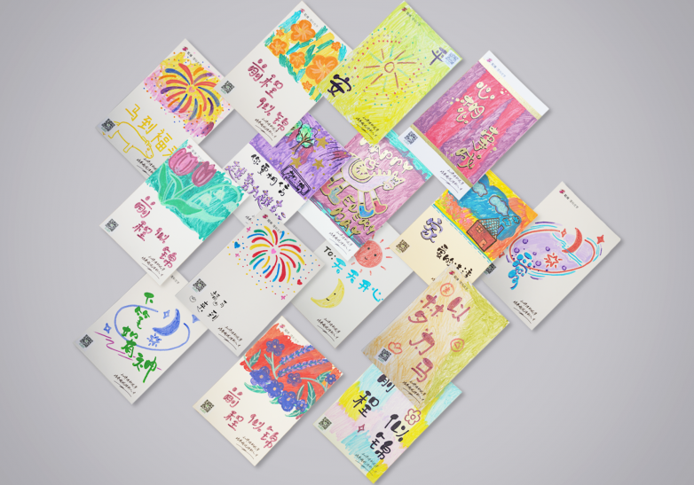 在【绿树成荫】文化艺术发展中心,自闭症、唐氏综合征等心智障碍儿童用鲜艳色彩勾勒对世界的纯粹认知;上海盲校的低视力同学凭借指尖对线条与色彩的感知,创作出让人动容的作品。这些充满生命力的画作绘制于书信背面,与正面教师所写的“课堂成长细节”、“学业期许”形成呼应,让书信成为跨越地域、联结学员与特殊儿童的温暖纽带。