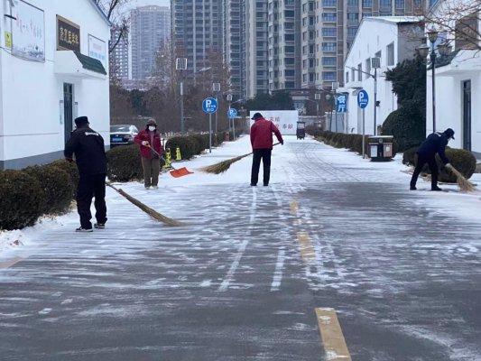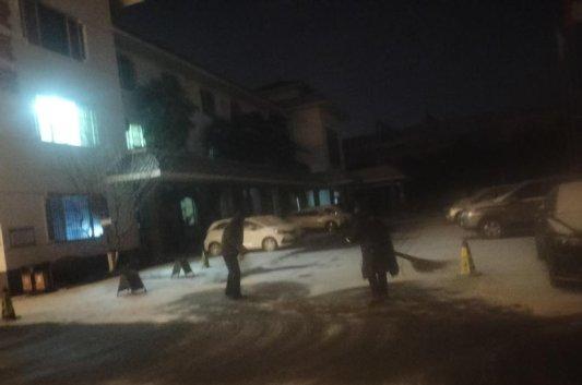 从深夜到清晨,医院院内及周边主干道上处处可见忙碌的身影。保安、保洁人员手持铁锹、扫帚,奋力清扫积雪;医护人员也主动加入队伍,有的铲冰、有的扫雪,大家分工协作,干劲十足。为防止路面结冰,工作人员还在关键路段撒盐防滑,确保每一处就医通道都安全畅通。