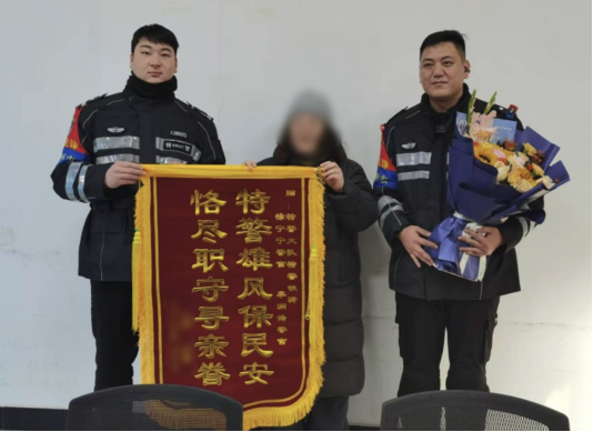 鲁网1月19日讯1月15日上午,崂山公安分局特警大队收到市民赵女士赠送的印有“特警雄风保民安 恪尽职守寻亲眷”的锦旗,对特警铁骑队员帮助找回走失的爷爷表示感谢。