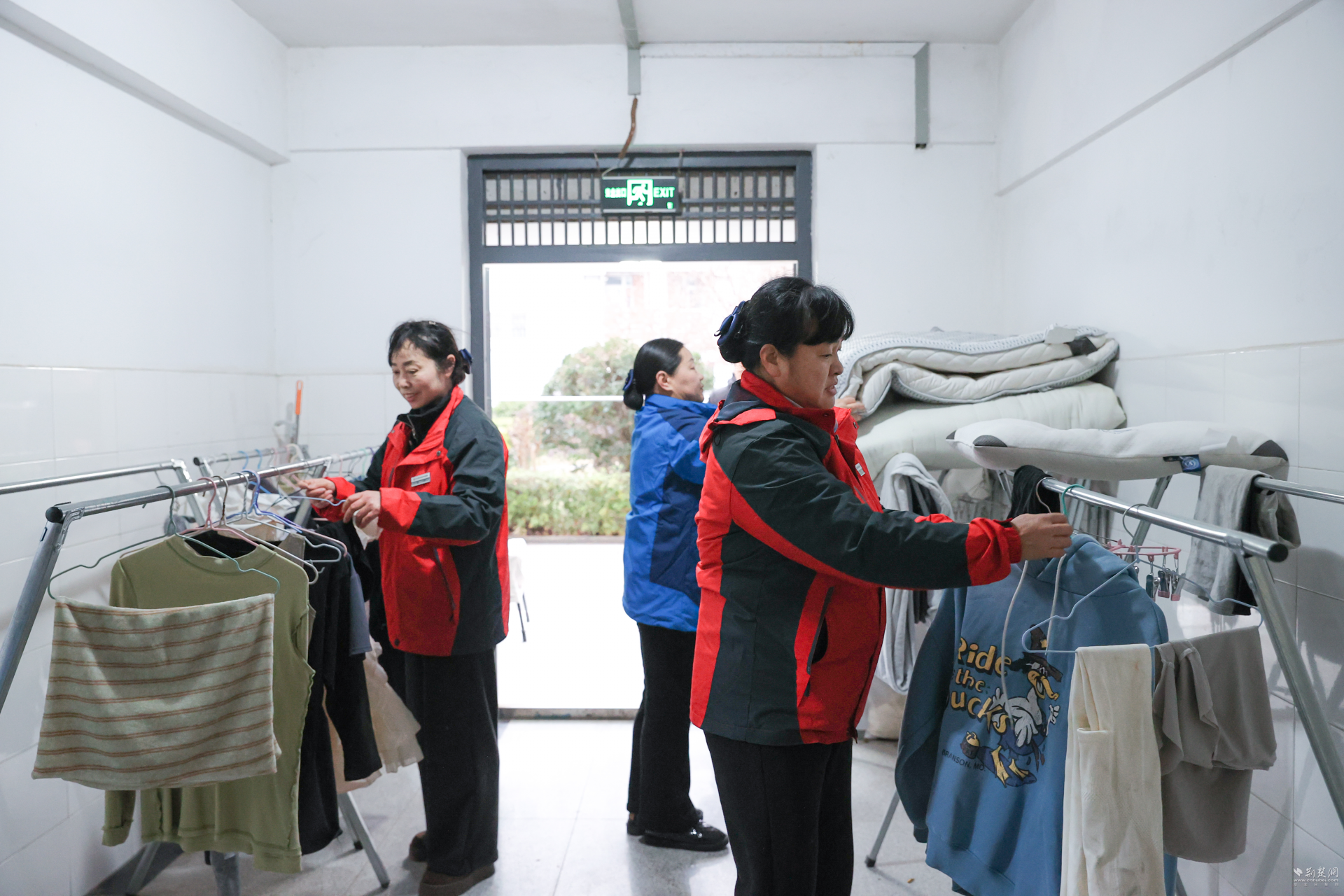 荆楚网(湖北日报网)讯(记者齐一璇 通讯员李诗宇、谭旻、郑梓岩)1月19日,寒潮大风、冰冻雨雪抵达武汉。武汉商学院40余名物业工作人员集中开展晾晒衣物整理工作,将离校学生“遗忘”在晾晒区域的衣物、被褥等物品统一收回、整理和存放,1个小时共收回200余件衣服、近30床被褥和其他少量个人物品。