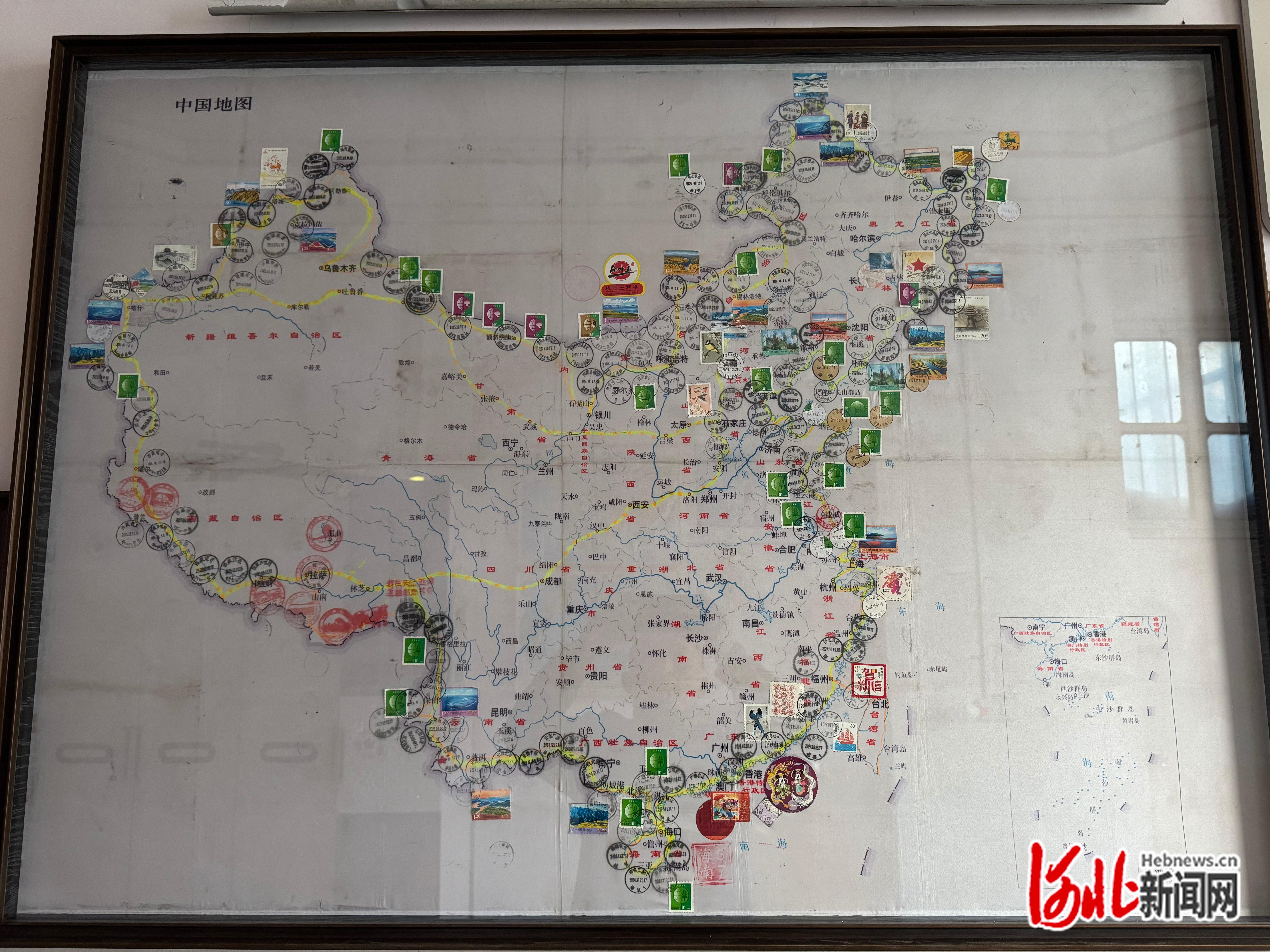 李迎帅沿途在地图上盖上邮戳。李迎帅供图