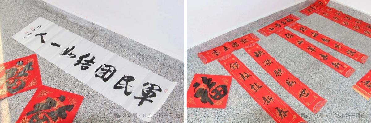 鲁网1月27日讯在马年新春佳节来临之际,1月27日,青岛市崂山区王哥庄街道退役军人新春送福活动走进一驻地部队和江家土寨村退役军人服务站,数位退役军人书画家现场挥毫泼墨,用一幅幅饱含军民深情的春联福字,勾勒军地鱼水相依的深厚情谊,为即将到来的新春佳节增添了浓郁的双拥文化氛围。