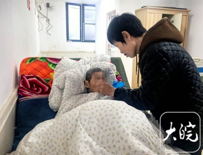 许西亮是村里的五保户,已经80岁了。2015年,独居的他不慎摔伤导致髋骨骨裂,后来又患上高血压和脑梗,导致生活难以自理。看到表叔日渐憔悴的状态,陶忠勤做出了一个决定——把他接到自己的家。当时,她的两个女儿还在上学,家庭负担很重。这一照顾,便是十余年光阴。