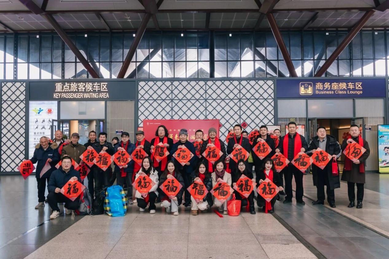 活动现场,书法家们挥毫泼墨,将一个个饱含年味与祝愿的“福”字递到旅客手中。八年来,这项活动已从车站延伸到社区、街道,累计送出数万幅“福”字与春联,覆盖群众超过两万人次,成为苏州春运期间深受欢迎的文化传统。如今,它早已超越简单的节庆馈赠,升华为一场凝聚社会情感、弘扬时代精神的文化行动,既增进了公众对书法艺术的了解与热爱,也在春运期间营造出温馨和谐的社会氛围,展现出文化艺术机构在新时代的担当与温度。