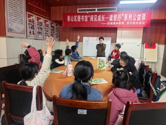鲁网2月3日讯2月2日上午,泰山区图书馆阅读推广活动室内,一堂别开生面的“阅见成长——读思行”系列公益课正式拉开序幕。适逢《全民阅读促进条例》正式实施,首期课程以“成长计划”为主题,带领孩子们从经典读物《植物的奋斗》出发,开启了一场从阅读到思考、从知识到行动的成长探索。