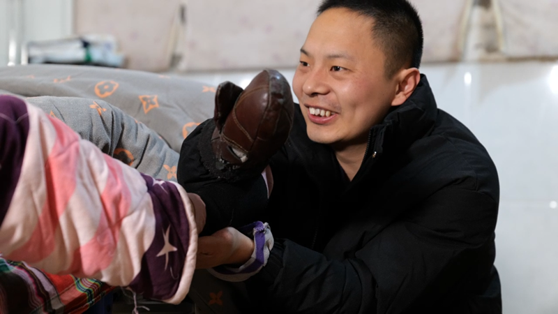 大河网讯(记者 朱丽文)2月9日,晨光微露,焦作沁阳市西万镇官庄屯村的一间居民房里,32岁的张凯已开始了一天的忙碌。他左手熟练地扶起妻子王芳芳,用胳膊肘抵住她的背部缓缓按摩,床头柜上放着记满康复要点的笔记本——他带着一双曾因公受伤落下永久残疾的手,已如此守护了妻子近9年。