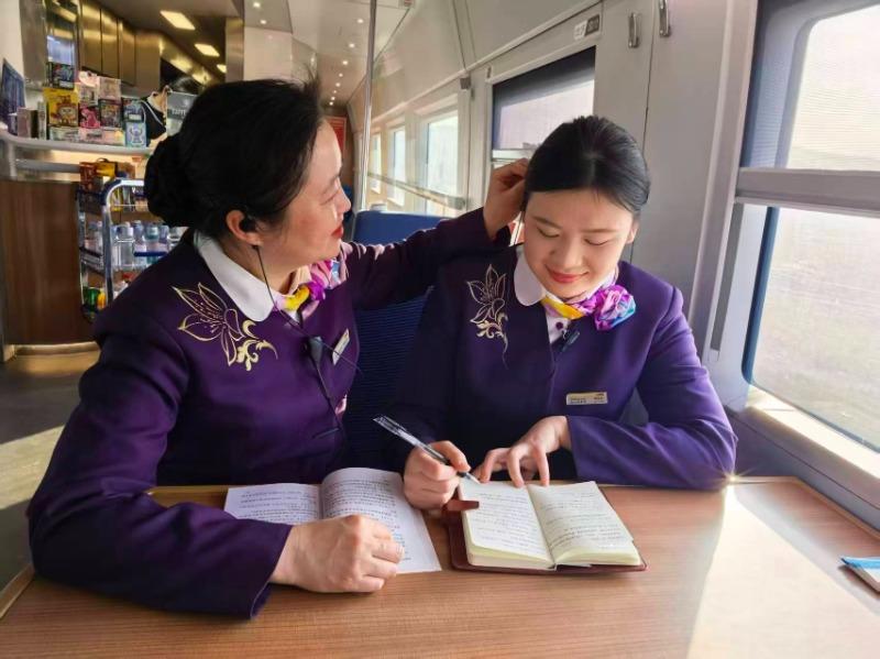 从烧煤的绿皮车到智能的复兴号,从师父传下的“脚要勤、嘴要甜、眼要尖、心要暖”十二字口诀,到如今与徒弟“双向奔赴”的“心要暖、技要新”,一代代铁路人的服务精神与时代脉搏,在这节小小的车厢里完成交接与更新。
