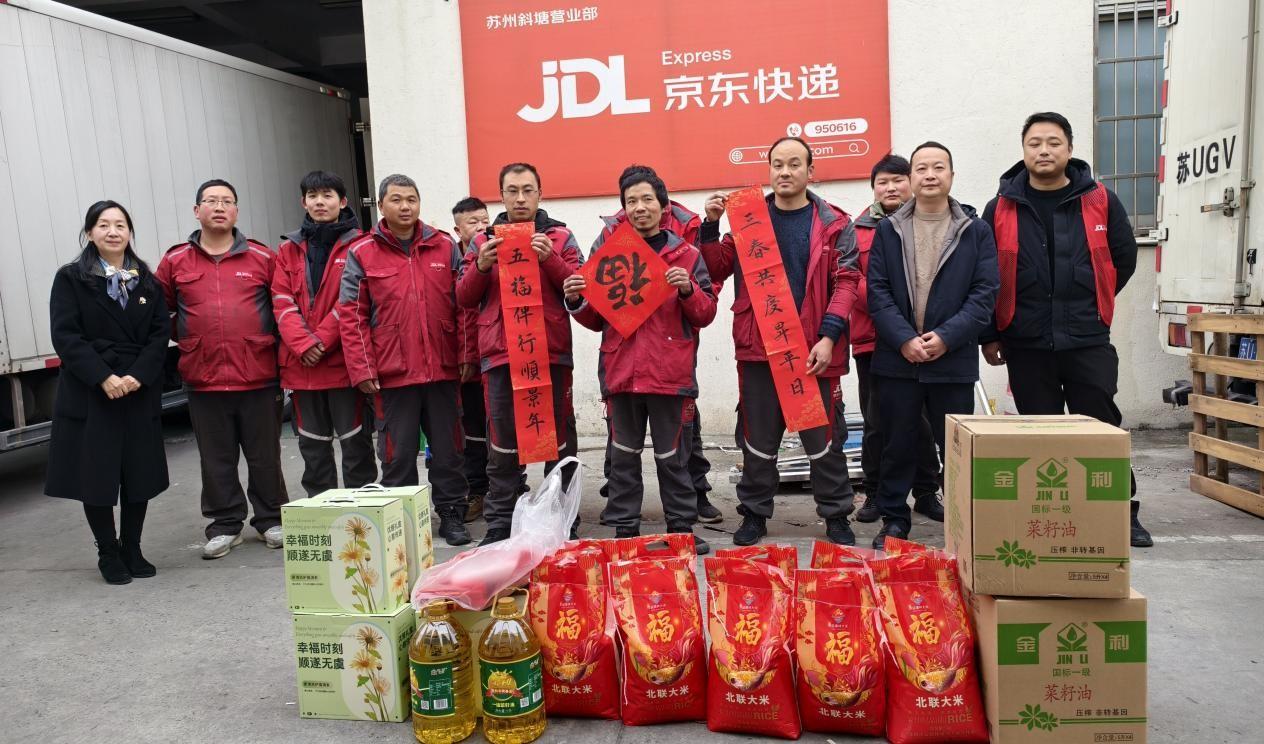 江南时报讯 新春渐近,年味渐浓。为感谢一线快递小哥坚守岗位、保障民生物流畅通,近日,苏州工业园区斜塘街道彩莲社区党委专程前往辖区内两处京东快递站点,开展“新春送温暖”慰问活动,为奔波在街巷的快递小哥送上大米、食用油、喜庆春联等慰问物资,让寒冬里的坚守多了一份温暖与底气。
