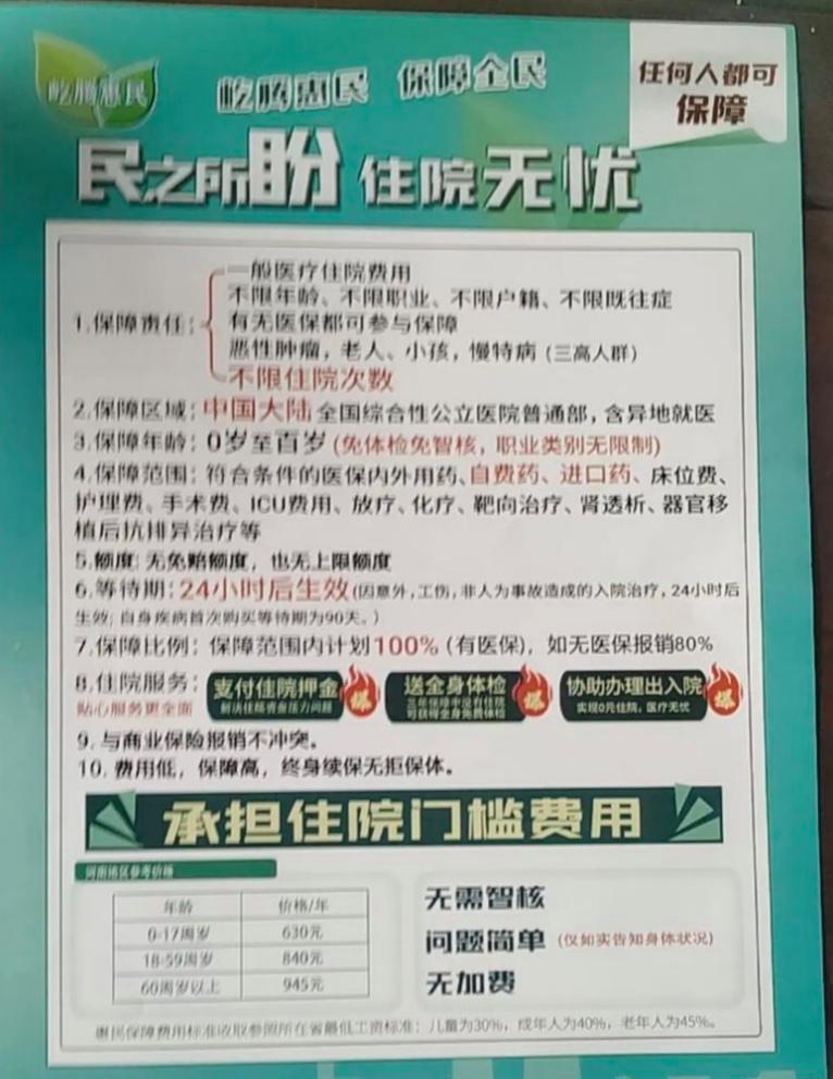 图片来自网络真正的杀招出现在2024年4月之后——高额佣金的引入。高达27%的佣金比例(相比之下,正规商业保险通常为10%-15%)迅速激发了大量代理人的参与热情。该公司采取的“总部统筹、区域代理、基层推销”的三级裂变模式,让每一个代理人都有动力去发展下线。代理人员不仅能从新招募的代理人的佣金中获得提成,还能从终端投保人那里获得额外收入。这种接近传销的激励机制,让整个组织快速膨胀——在不到一年时间里,公司在河南、山东、黑龙江等10省15市建立分支机构,业务覆盖全国30个省份。监管真空与信息不对称的制度性失守这个案件之所以能够存在、发展并膨胀到涉案7100余万元的规模,核心原因在于一个看似荒诞但又极其现实的问题:大连屹腾根本不具备保险业务经营资质。根据金融监管总局的许可证查询,这家注册资本高达2亿元、号称要做“惠民保障”的公司,根本没有获得任何保险业务的批准。而且令人惊讶的是,如此明显的资质缺陷,在项目运营的前期居然没有被有效制止。在数字时代,互联网金融产品的销售渠道日益多元化,很多社交媒体都可以看到“屹腾惠民”身影。这种分散式的销售网络本身就增加了监管的难度。传统的保险监管更多聚焦于持证机构和正规销售渠道,对于这种伪装成保险产品但通过非正规渠道销售的活动,往往缺乏有效的前置监控机制。更深层的问题在于消费者与产品之间的信息不对称。大多数普通投保人对保险法的相关规定、保险业的运作逻辑、以及保险产品的真实设计原理,知之甚少。他们的保险知识往往来自于销售人员的介绍或者身边朋友的口碑传播——恰恰是最容易被误导的信息来源。这种信息不对称在产品宣传层面被放大到极致。“屹腾惠民”声称与医保部门合作、有政府授权和报备,这些说法之所以能够迷惑消费者,根本上是因为消费者无法快速、有效地验证这些信息。即使想核实,一般人也不知道应该去哪个部门问、怎么问。有消费者产生了疑虑,销售人员早已准备好了解释——比如声称“保险产品和政府部门的合作关系是保密的”之类的借口。