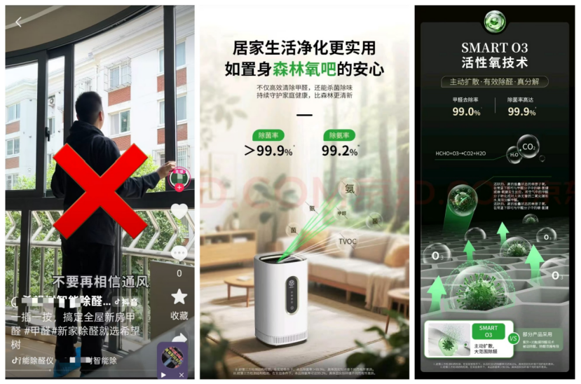 除醛市场乱象:虚假夸大宣传,健康隐患显现此前,《中国消费者报》报道揭露了除醛仪市场主要存在三个主要问题:一是虚假夸大宣传,宣称“单台覆盖180㎡”“2小时除醛率99% ”等内容,但其数据基于小型密闭试验舱得出,与家庭实际场景差异大;二是隐瞒核心原理及健康风险,将“臭氧”等包装为“活性氧”“超氧”等模糊概念,未明确告知健康危害;三是散布“开窗通风无用”等错误言论,贬低传统除醛方法。