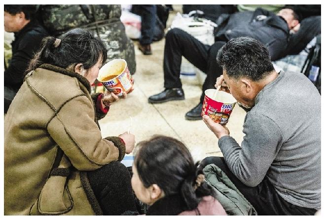 角落里,在杭州做服装的李女士匆匆吃了一碗泡面,准备带上行李去检票。李女士老家在河南,“路上睡一觉,天亮就到家了,很快的。”李女士的脸上藏不住笑意,说话时,眼睛笑成一弯月牙。“2025年我各方面都比较满意。”李女士现场“晒”起了幸福,“孩子成绩好,父母身体健康,和丈夫感情也好,虽然没生活在一起,但两个人劲往一处使,都是为了这个家,我觉得特别幸福。”