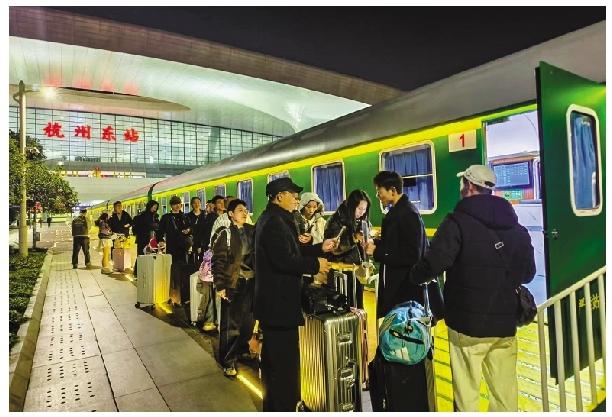 春运期间每晚9时,“星辰守护号”暖黄色的灯光准时点亮车厢。“这是专门为23:00至次日7:30出发,或23:50后抵达的旅客打造的深夜休息区。”杭州东站枢纽管委会工作人员介绍。