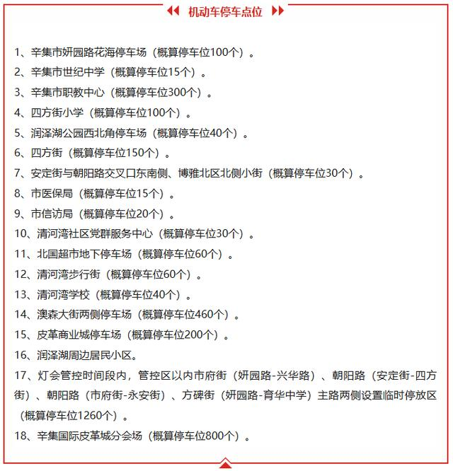 2月10日至3月4日,辛集市将实行市内公共交通免费乘坐惠民政策,全面推行“招手即停”便民服务,全力满足市民游客赏灯、购物、游玩等多元化出行需求。辛集市还增设了包括辛集市医保局、辛集市信访局等机关事业单位在内的免费临时停车点位,共计3680余个。开放时间为2月10日至3月4日,共23天。