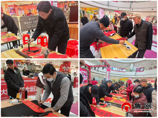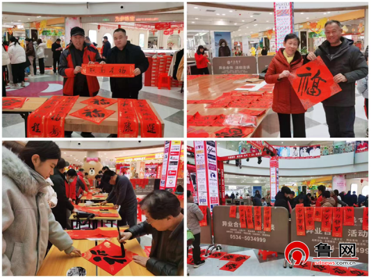 鲁网2月11日讯(记者 逯广宇 通讯员 赵慧)为弘扬中华优秀传统文化,传承新时代儒商精神,营造浓厚的节日氛围,2月8日上午平原工委会在党支部书记张友国、工委副主任王兴军带领下,组织8名优秀书法家走进平原德百商场,开展 “翰墨传承优秀文化,儒商送福情暖人心”为顾客送春联活动。