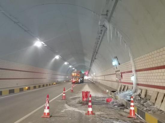 针对红石隧道渗漏水结冰隐患,已对结冰路段实施单幅封闭,规范设置警示标识;联合养护单位实行每日不少于2次除冰、堵漏作业,采取车巡与视频巡查相结合方式,全程盯控路面状况。