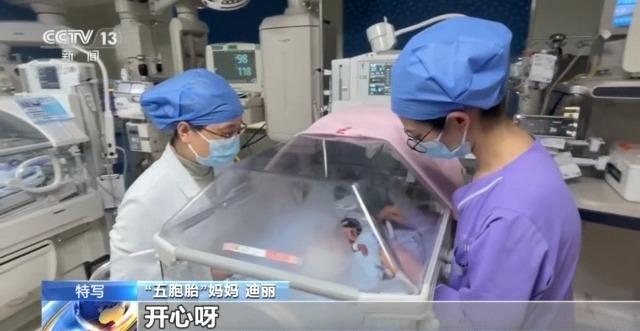 “五胞胎”妈妈 迪丽:知道他们情况还可以,医生给我们说了。开心。